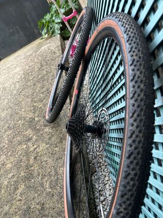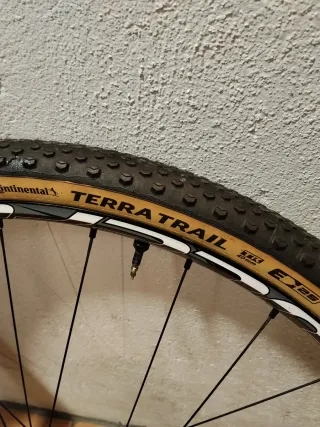 Set di ruote Fulcrum per bicicletta. - Ruota anteriore con copertura Hutchinson Tundra. - Ruota posteriore con copertura Continental Terra Trail e cassette. - Senza dischi freno