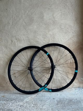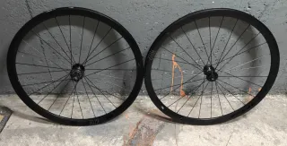 Set di ruote 700cc per gravel. Nuove. Conservate come riserva, ho subito un incidente. Costavano 600€ - Profilo 30 - 1.900g il set - Per freni a disco centerlock - 28 raggi anteriori e posteriori - Cuscinetti sigillati - Tubeless - Nucleo XDR per 12 velocità. ACCETTO SCAMBIO PER RUOTE 29”
