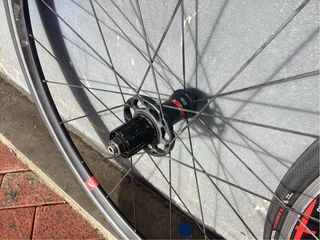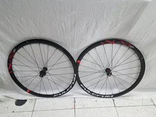 Set di ruote da strada in alluminio per freno a disco. Utilizzate molto poco. Si vendono per il passaggio a ruote in carbonio. Nucleo SRAM per 12V.