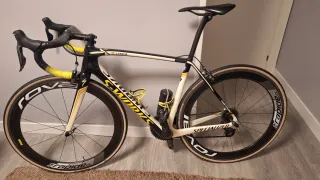 Bici da strada in carbonio Specialized Sworks Tarmac SL6 in ottime condizioni. - Telaio in carbonio taglia 54 verniciato un anno fa. - Ruote Campagnolo Bora One 45 (piccola marca estetica sulla banda di frenata che non influisce sul funzionamento e non è necessario riparare) - Gruppo DuraAce 11v completo - Pedali Ultegra 12v 52-36 NUOVI -Cavi freno, catena e nastro del manubrio nuovi. -Pedali Ultegra inclusi Manca il rivestimento sui freni che è solo estetico. Autenticità dimostrabile con numero di serie. NON È UNA RÉPLICA Prezzo negoziabile