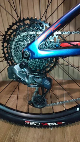 Bici usata ricondizionata · 1 anno di garanzia · Immagini reali · Finanziamento da 350 € in 12 mesi · Bicicletta Mountain Bike doppia sospensione · Telaio in Carbonio · Taglia L: da 174 cm a 187 cm · Dimensioni della ruota: 29" · Deragliatore posteriore: · 12 Velocità velocità · Cassetta: 10-52-T · Leve del cambio: Sram X01 AXS · Pedivelle: Sram SX · Corone: 32-T · Freni: Avid XX · Ruote: · Forcella: RockShox SID Ultimate · 120mm di escursione · Ammortizzatore: RockShox SID Luxe Ultimate · Materiale della potenza: Alluminio · Manubrio: · Reggisella: Alluminio Telescopica.
