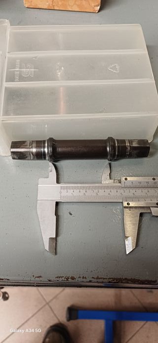 Perno passante o asse Shimano per guarnitura bicicletta. - Materiale acciao. Prezzo fisso non chiedete sconti. - Design con finiture argentate e parte centrale scura.