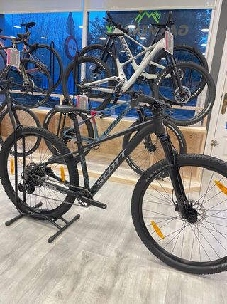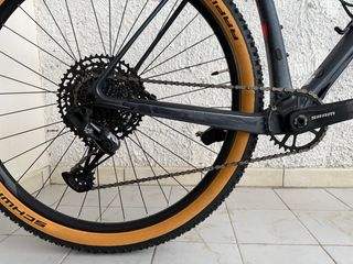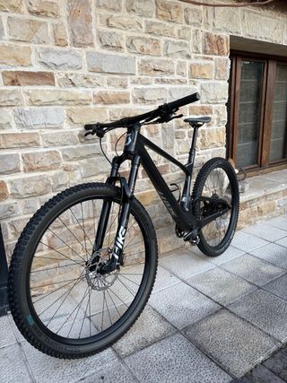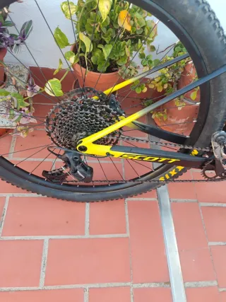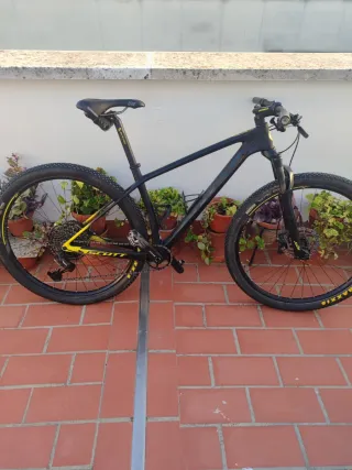 Bicicletta da mountain bike in carbonio con ruote da 29 pollici. - Telaio in carbonio leggero. - Cerchi color tan (marrone chiaro). - Pneumatici Schwalbe. - Cambio posteriore. - Freni a disco. Vendo Scott Scale 940 telaio in carbonio. Forcella RockShox Judy Silver TK Solo Air; 15x110mm QR axle / 42mm offset / Tapered Steerer; Reb. Adj. / Lockout / 100mm trave. Deragliatore posteriore:SRAM NX Eagle Pedivella:SRAM SX Eagle. Nella bici ho sostituito il sistema frenante com quelli XT 8100, ho sostituito anche i dischi freni conShimano Disco 180mm Center Lock-RT-MT800 Ice-Tech Freeza, Shimano XT RT-MT800 Center Lock Ice-Tech Freeza Di