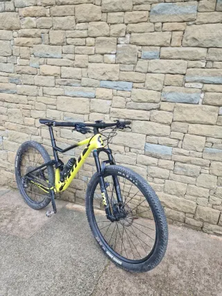 Bicicletta da montagna Scott Spark RC di colore giallo, TAGLIA M, la bicicletta è stata usata pochissimo, è stata protetta con vinile dal primo giorno e non presenta graffi o usura. Stelo telescopico. 💸Astenersi offerte ridicole. La bicicletta da montagna Scott Spark RC Comp Carbono HMF è dotata di un sistema di sospensione anteriore e posteriore da 120 mm progettato per terreni diversi. Il telaio è realizzato in carbonio HMF, offrendo un equilibrio tra rigidità e peso. Include un gruppo di trasmissione a 12 velocità, garantendo un'ampia gamma di rapporti per diverse pendenze.