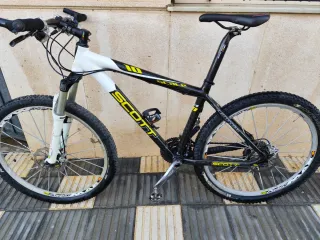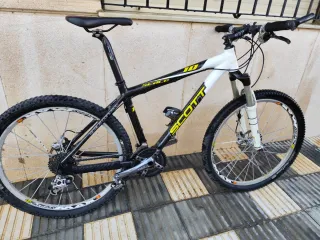 Bicicletta da montagna Scott, ideale per sentieri e strade. USATA SOLO 1 VOLTA, COME NUOVA. Monoplato, meglio vedere. Il prezzo era di 1.000 euro in negozio. Si vende per mancanza di spazio, acquistata per capriccio. - Telaio in alluminio. - Sospensione anteriore RockShox. - Freni a disco idraulici. - Cambio Shimano. - Ruote Maxxis.