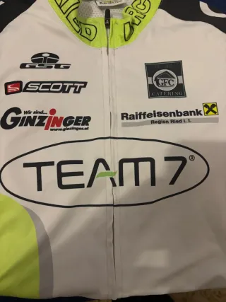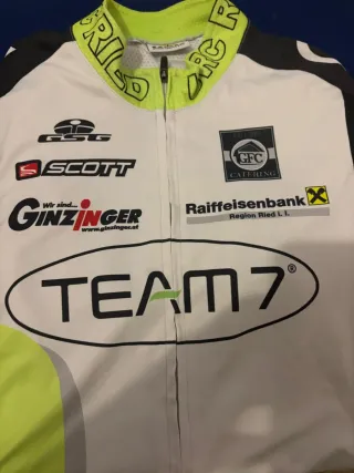 Iconica maglia da ciclismo unisex, un pezzo vintage che non passa inosservato. Perfetta per gli appassionati di ciclismo. - Design con loghi GSG, SCOTT, GFC Catering, Raiffeisenbank e Team 7. - Colori vivaci e accattivanti. - Collo con dettagli a contrasto.volendo in omaggio disponibile anche altra maglia e anche di altri brand affrovitta di questa promo acquista 5pezzi il meno caro e omaggio
