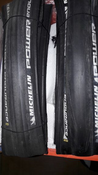 Set di due copertoni Michelin Power Endurance. - Misura 25. - Misura 28.