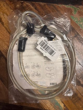 Catena antifurto per bicicletta. - Cavo in acciaio rivestito. - Rivestimento in PVC trasparente. - Due chiavi incluse.