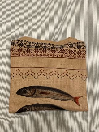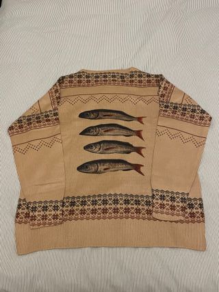Maglia girocollo da donna con stampa di Sardine Maglia nuova mai indossata Misto Lana, Taglia L