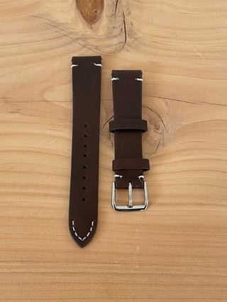 Cinturino in pelle morbida adatto ad orologi con anse da 18mm. Colore Marrone con cuciture bianche. Il cinturino è dotato di clip per l'installazione e non necessita quindi di anse aggiuntive (sgancio rapido) Cinturino nuovo, mai usato