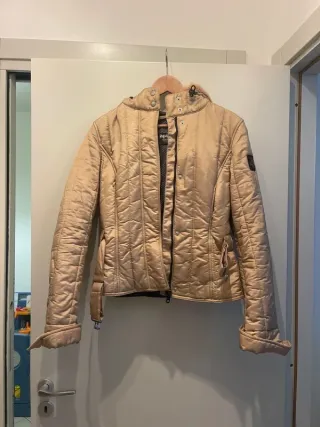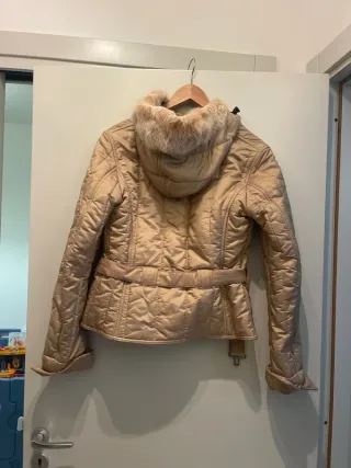 Elegante piumino da donna con un design trapuntato e cappuccio. - Chiusura frontale con cerniera. - Dettagli con cintura in vita. - Patch logo sulla manica.