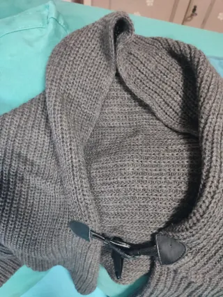 Elegante coprispalle a mantella in maglia. - Chiusura con bottone a levetta. - Design a mantella. - Tessuto a coste.