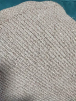 Scaldacollo in maglia beige con sottili fili dorati che aggiungono un tocco di luce. - Tessuto morbido e caldo. - Design a coste. - Bordo rifinito. Misure 35x35
