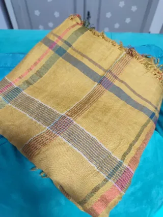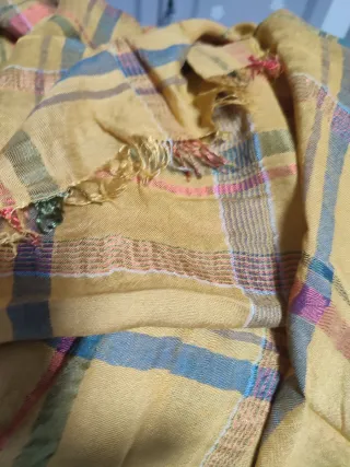 Sciarpa grande in cotone con un motivo a quadri colorato. Il tessuto presenta una trama leggera e bordi sfrangiati. Misure 190x90 - Materiale: cotone - Design: a quadri - Dettagli: bordi sfrangiati