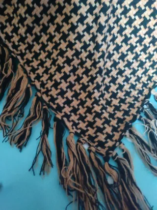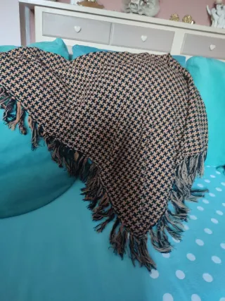 Pashmina originale con un elegante motivo. - Motivo pied-de-poule. - Frange decorative.