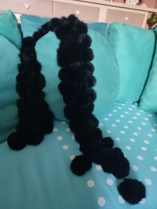 Sciarpa in morbido tessuto peluche, perfetta per aggiungere un tocco di stile. - Design con pompon. - Colore nero intenso.
