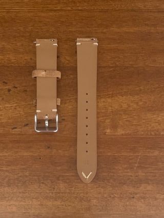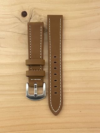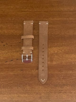 Cinturino in pelle scamosciata morbida adatto ad orologi con anse da 18mm. Colore Marrone chiaro con cuciture bianche. Il cinturino è dotato di clip per l'installazione e non necessita quindi di anse aggiuntive (sgancio rapido) Cinturino nuovo, mai usato