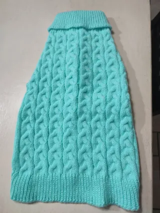 Maglioncino lavorato a trecce per cani, con collo alto. - Lavorazione a trecce. - Collo alto a costine. - Fondo a costine. Mai utilizzato perché taglia sbagliata. Misure in foto
