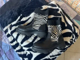 Stivaletti alla caviglia con un design audace. - Inserto in tessuto a fantasia zebrata. - Suola in gomma. - Design a calzino.