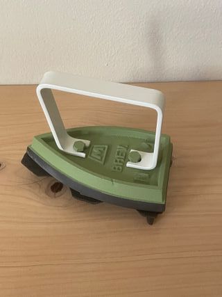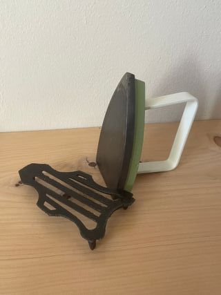 Vecchio ferro da stiro a caldo Brevetto N.1 in Ghisa di fine ‘800, completamente restaurato e verniciato in stile Shabby Chic in verde vintage e bianco avorio. Oggetto ottimo per esposizione e collezione.