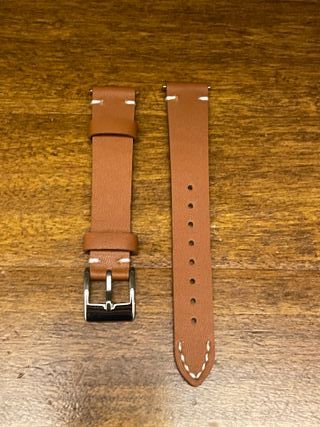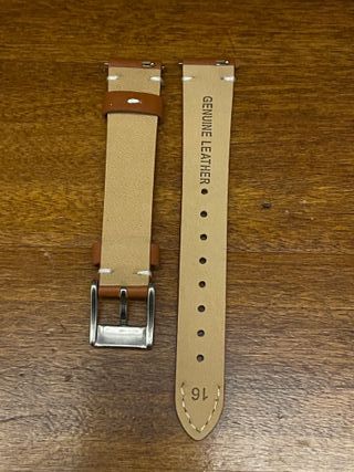 Cinturino in pelle morbida adatto ad orologi con anse da 16mm. Colore Marrone Chiaro con cuciture bianche. Il cinturino è dotato di clip per l'installazione e non necessita quindi di anse aggiuntive (sgancio rapido) Cinturino nuovo, mai usato