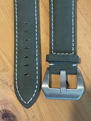 Cinturino in pelle scamosciata , larghezza 22mm in colore Verde con fibbia in metallo Cinturino nuovo, mai usato Fornito con le clip per l'installazione