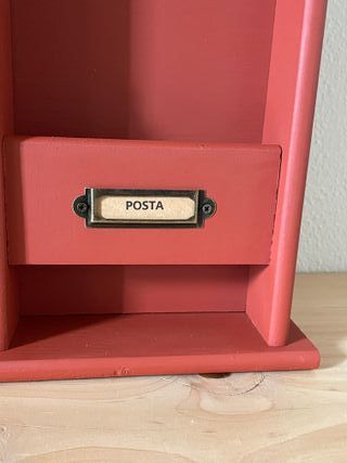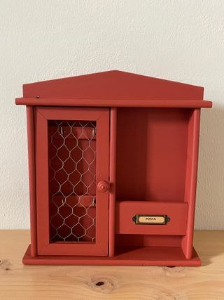 Pratico porta lettere e porta chiavi da parete, perfetto per organizzare la posta e le chiavi. Colore rosso inglese con dettaglio porta etichetta in metallo Dimensioni 27x30cm profondità 5cm