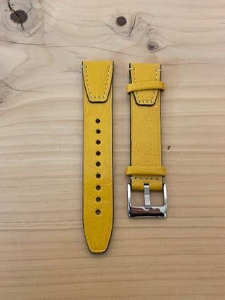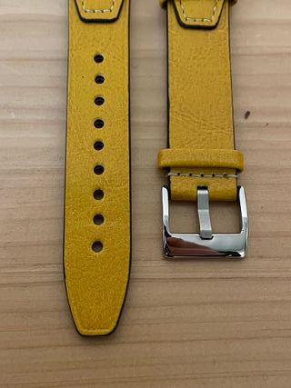 Cinturino in pelle , larghezza 20mm in colore Giallo con fibbia in metallo lucido Cinturino nuovo, mai usato Fornito con le clip per l'installazione