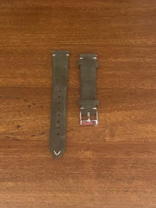 Cinturino in pelle scamosciata morbida adatto ad orologi con anse da 18mm. Colore Verde con cuciture bianche. Il cinturino è dotato di clip per l'installazione e non necessita quindi di anse aggiuntive (sgancio rapido) Cinturino nuovo, mai usato