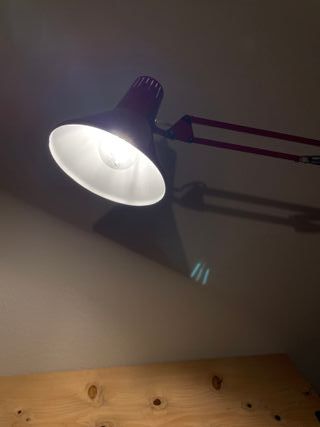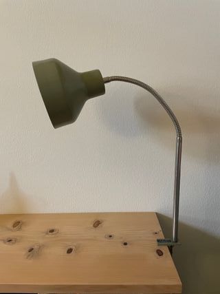 Lampada da scrivania snodabile vintage anni 60'-'70 in stile industrial colore grigio-verde. Morsetto per fissaggio a scrivania, Braccio in metallo fisso nella prima parte e flessibile nella seconda parte. Tutto perfettamente funzionante e originale Qualche segno del tempo sul paralume, ma sono garanzia dell’autenticità dell’oggetto.