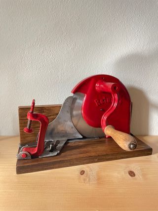 Stupenda affettatrice manuale vintage risalente agli anni'60. Oggetto originale in ogni parte, completamente restaurata e funzionante Base in legno con morsetto per fissaggio al tavolo, Lama in acciaio Perfetta come oggetto da collezione ed esposizione ma anche per utilizzo #Vintage #Affettatrice #Cucina #Rustica #Campagna