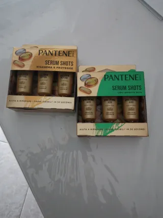 Due confezioni di Pantene Serum Shots, ideali per riparare i capelli. - Una confezione con Collagen Peptide, per rigenerare e proteggere. - Una confezione con Hyaluronic Acid, per capelli lisci effetto seta. - Aiutano a riparare i danni visibili in 30 secondi.