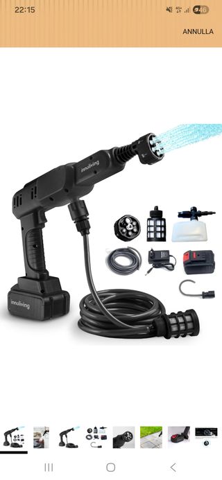 Idropulitrice Portatile Senza Filo e Ricaricabile per una Pulizia conveniente ovunque tu sia 6 regolazioni del getto d'acqua per adattarsi alle diverse esigenze di pulizia 7 Accessori inclusi, Include un adattatore per bottiglia e un contenitore sapone per una pulizia ancora più efficace Batteria potente da 18,5V 3000mAh per una lunga durata operativa Batteria Removibile e Caricabatteria incluso per una ricarica rapida e comoda