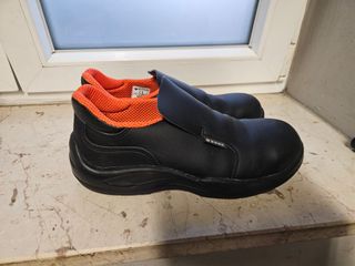 Scarpe antinfortunistiche modello Cloro. - Tomaia in pelle. - Fodera in mesh traspirante. - Suola in poliuretano. - Puntale in acciaio.
