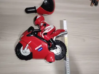 Moto giocattolo radiocomandata Chicco, modello Ducati 1198. Gioco bellissimo e divertissimo - Design ispirato alla moto Ducati. - Colore rosso e nero. - Dettagli del marchio DUCATI. Non ho confezione originale né libretto istruzioni.. Gioco perfettamebte funzionante con piccole raschi come in foto.. Pile non incluse