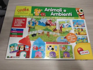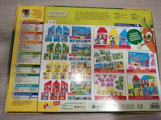 Gioco educativo Lisciani Animali e Ambienti della linea Carotina Preschool. - Adatto a bambini dai 3 ai 6 anni. - Include 5 giochi per scoprire animali e i loro habitat. - Contiene 4 ambienti e 24 tessere. - Promuove associazioni logiche Mamme e Cuccioli. - Made in Italy. Gioco bellissimo e come nuovo.. Ho confezione originale questa leggermente rovinata come in foto.. Ho libretto