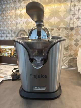 Spremiagrumi elettrico Ariete, modello ProJuice, con finitura in acciaio inox. - Design moderno e compatto. - Ideale per preparare succhi freschi. - Marca: Ariete.