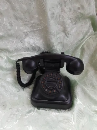 Un classico telefono fisso con design retrò. - Tastiera rotante con numeri e simboli. - Ricevitore con cavo a spirale. - Base solida e stabile.