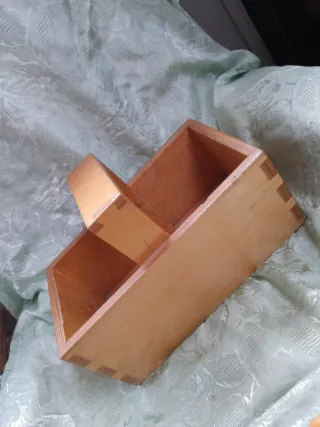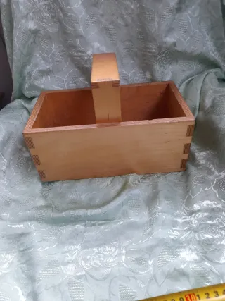 Pratica cassetta in legno, ideale per organizzare gli attrezzi da cucito o piccoli oggetti. - Realizzata in legno chiaro. - Manico centrale per un facile trasporto. - Design semplice e funzionale.