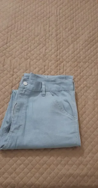 Pantaloni Carhartt in taglia 33x34. - Colore grigio/azzurro. - Vestibilità comoda.