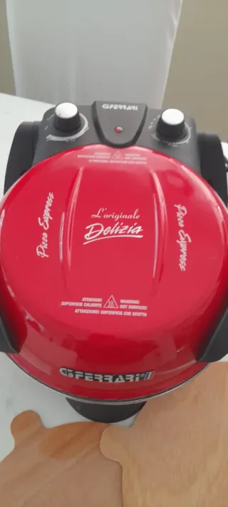 Forno per pizza GFerrari, modello L'Originale Delizia. Design rosso brillante. - Coperchio rosso lucido. - Manopole nere. - Base nera. Usato solo 3 volte, in perfette condizioni,funzionante!