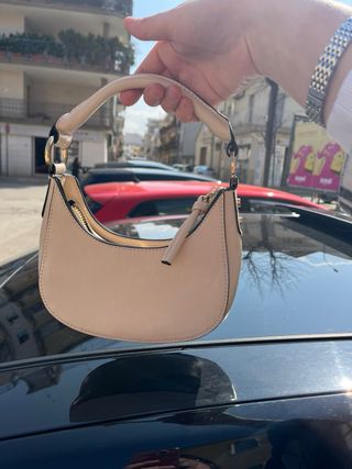 Borsetta a mano color panna, con tracolla regolabile e removibile. - Chiusura con zip. - Dettagli con cuciture a vista. - Finitura opaca.