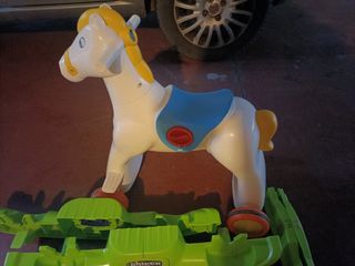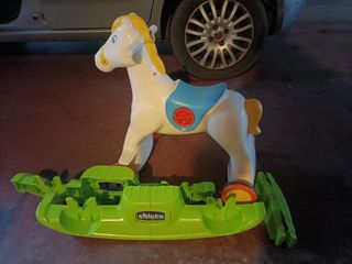 Cavallino a dondolo Chicco, ideale per i più piccoli. - Colore bianco con dettagli blu e gialli. - Base a dondolo verde. - Logo Chicco visibile sulla base. Ha anche le ruote