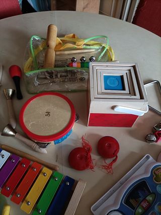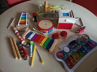 Un allegro set di strumenti musicali per i più piccoli, perfetto per avvicinarli al mondo della musica. - Xilofono colorato con bacchette. - Tamburello con cornice rossa. - Maracas rosse. - Campanelli. - Flauto giocattolo. - Altri piccoli strumenti inclusi. Tutto insieme per 20 euro