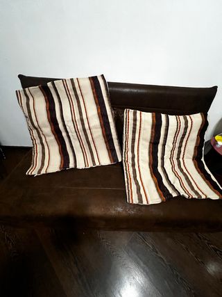 Set di due copricuscini con un elegante motivo a righe. - Misure: 65x67 cm. - Realizzati in cotone.