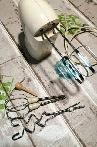 Sbattitore elettrico Philips, modello HR 1560/6, di colore bianco panna. Ideale per la cucina. - Design compatto e maneggevole. - Completo di fruste e ganci per impastare. Con istruzioni e imballo originale. Come nuovo.
