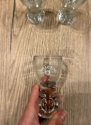 Set di 6 bicchierini per amaro Unicum, perfetti per degustare il tuo liquore preferito. - Mai usati, in ottime condizioni. - Realizzati in vetro trasparente.