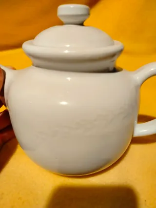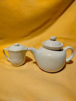 Set di due pezzi della serie Rondini di Mulino Bianco anni 90, composto da teiera e bricco latte in ceramica bianca Dimensioni: teiera lunghezza con manico 22cm, larghezza 13cm, altezza con coperchio 16cm; bricco lunghezza con manico 13cm, larghezza 8cm, altezza con coperchio 11cm. Peso di entrambi 1 chilo e 220 grammi. Mai usati se non come soprammobile, vendibili anche separatamente. Imballo accurato