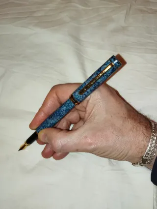Stilografica "Blue Marble" & Gold – Eleganza e Carattere Esalta la tua scrittura con questa stilografica dal design magnetico. Il fusto con finitura Blue Marble (effetto marmo) crea un gioco di sfumature unico, impreziosito da dettagli e clip dorato lucido. Design Distintivo: Texture minerale blu intenso, perfetta per chi cerca uno stile ricercato. Scrittura Fluida: Pennino di precisione per un tratto netto e costante iridium point Germany. Impugnatura ergonomica bilanciata, ideale per l'uso quotidiano o per la firma di documenti importanti. Ottime condizioni estetiche