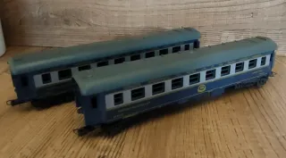 Set di due carrozze Lima in scala. - Carrozza ristorante. - Modello Lita. - Colore blu e grigio.
